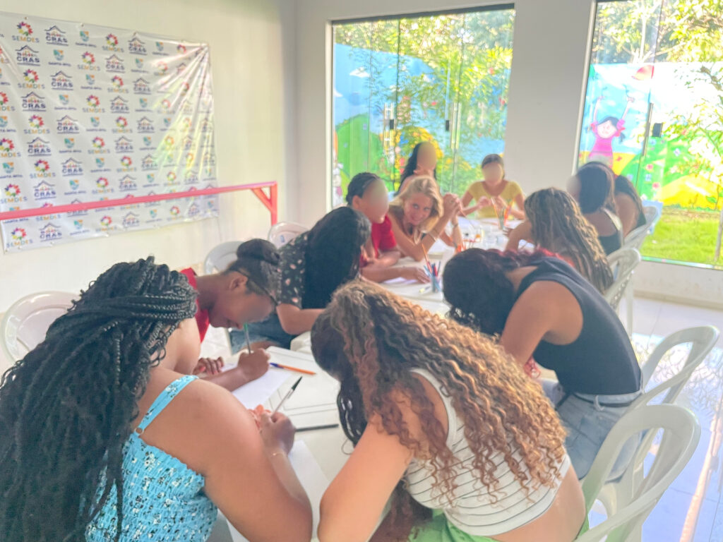 “A roda de conversa foi importante para compreendermos as experiências e opiniões dela sobre a temática. Também tivemos trocas para além da pesquisa que foram muito interessantes e bonitas pra mim nessa primeira vez ao Brasil, Maranhão. Elas gostaram muito da experiência de desenhar e falar em grupo, e também de repensar o tema que normalmente não é abordado entre as famílias”.